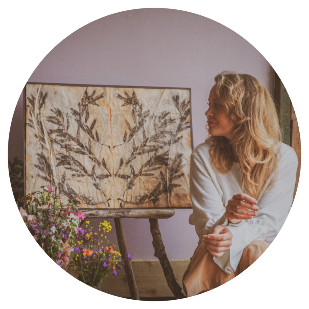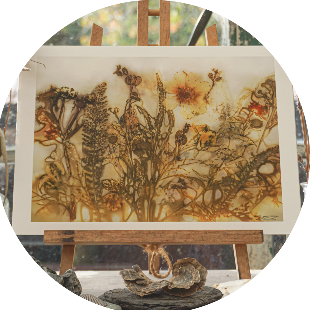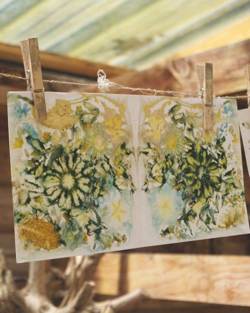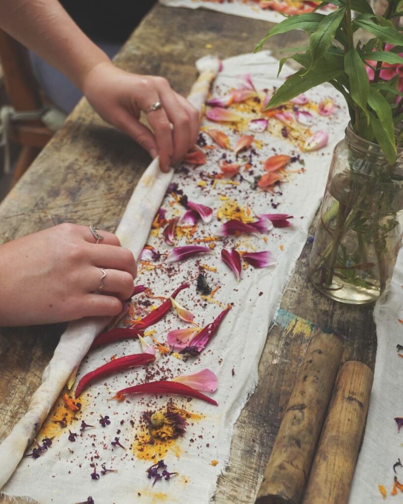 Working with mediums such as minerals, flowers and leaves, as well as natural dyes and foraged inks.